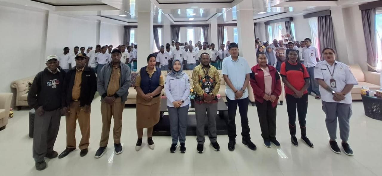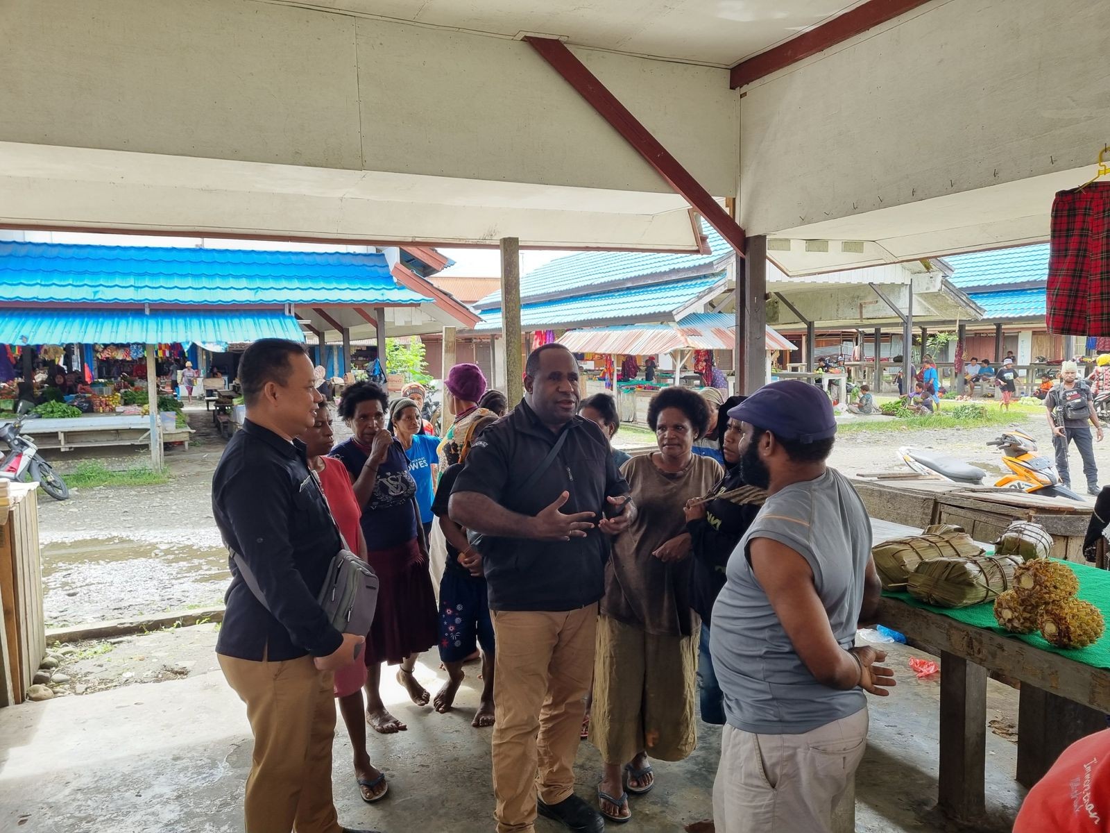 KPU Provinsi Papua Pegunungan bersama Inspektorat RI melaksanakan sosialisasi di Pasar Dekai, Kabupaten Yahukimo.