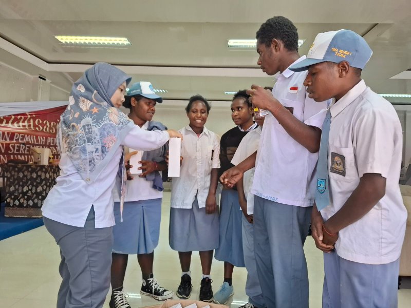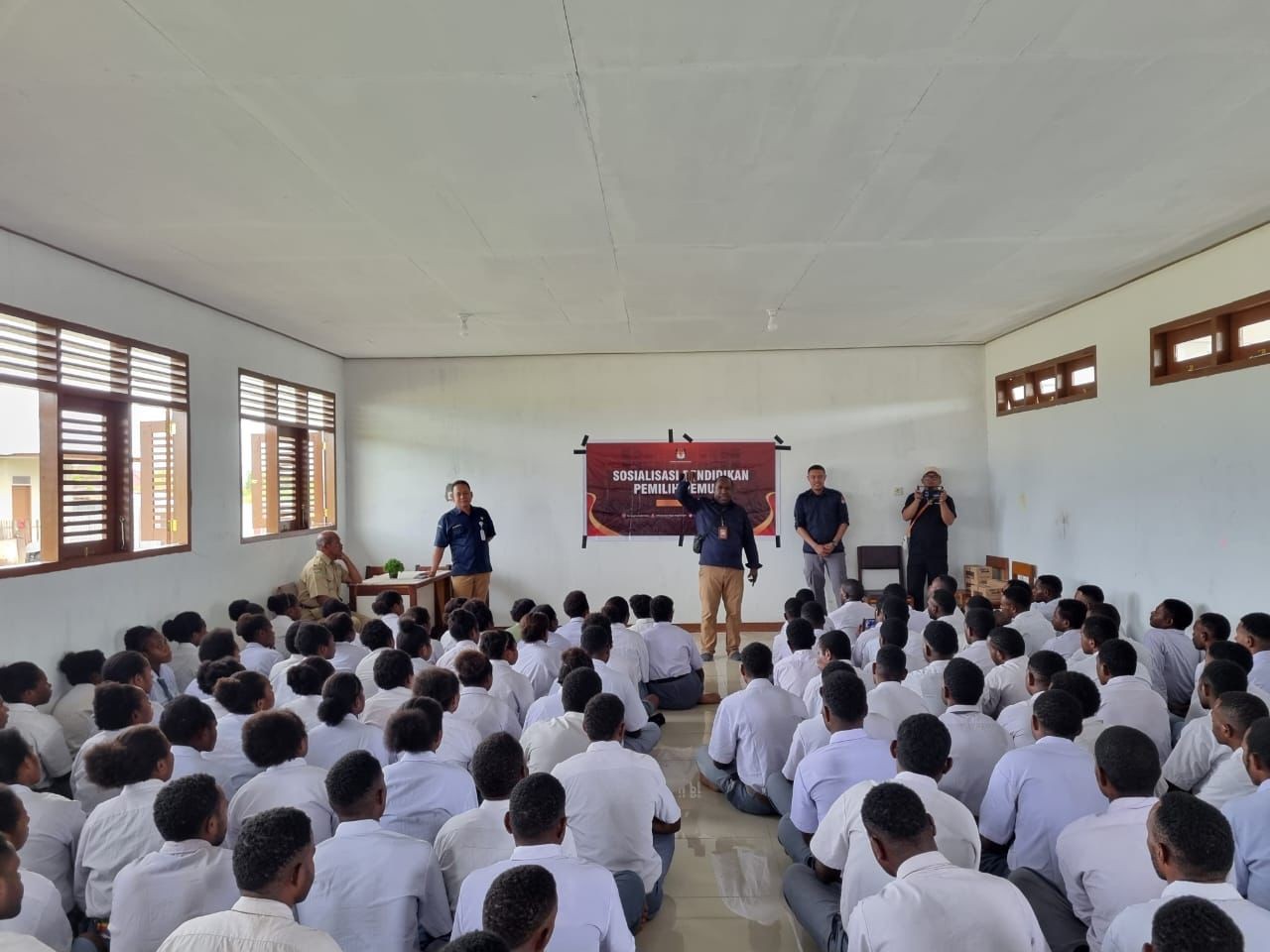KPU Provinsi Papua Pegunungan melakukan sosialisasi kepada Siswa di SMA Negeri 1 Dekai Kabupaten Yahukimo Provinsi Papua Pegunungan 2024.
