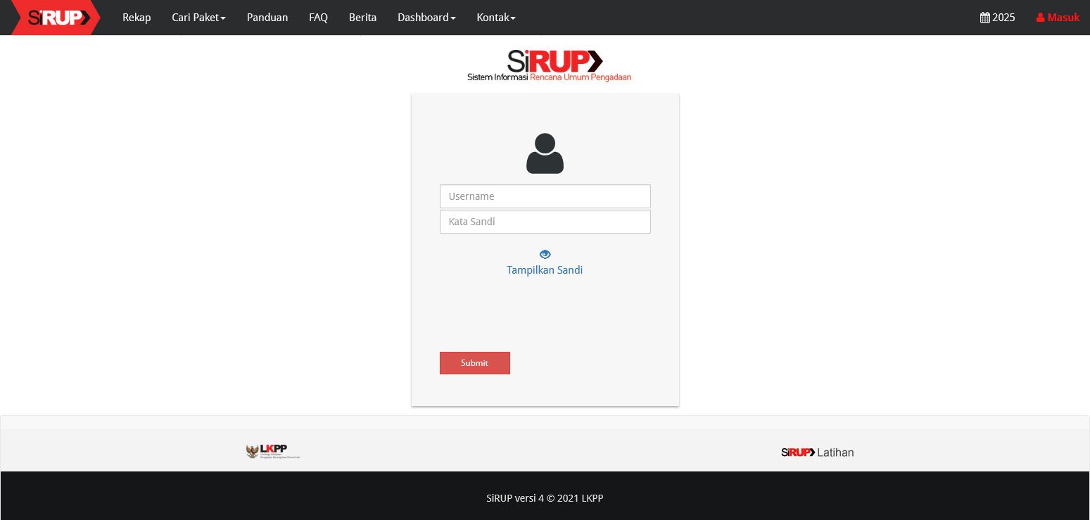 Aplikasi SiRUP dapat diakses melalui laman resmi https://sirup.lkpp.go.id.