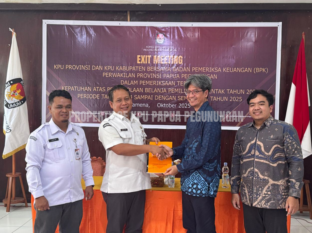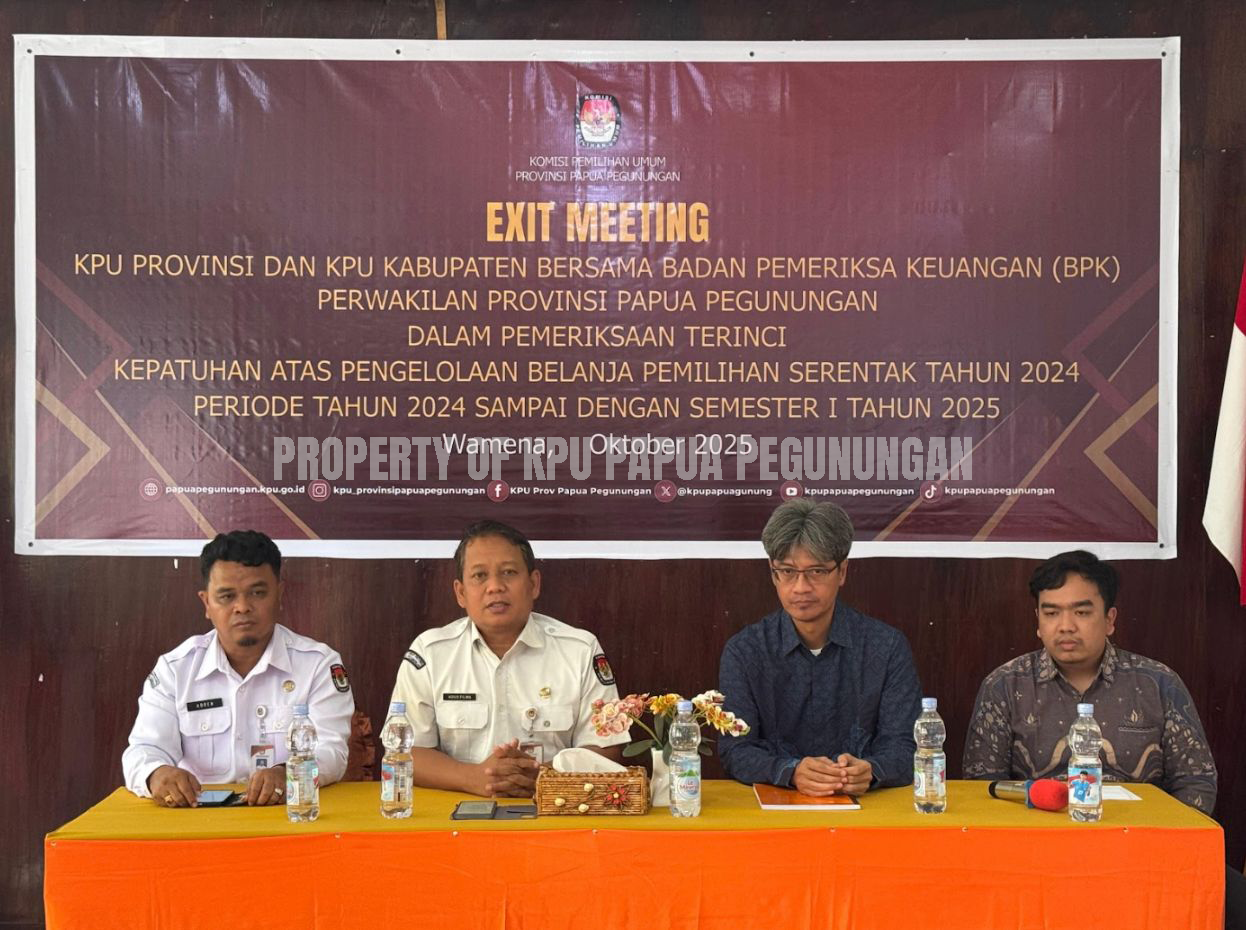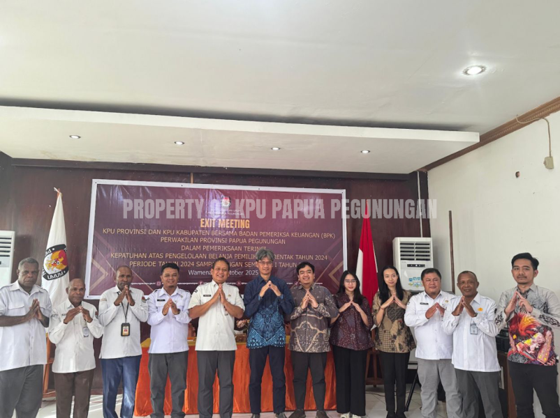 Wamena — Komisi Pemilihan Umum (KPU) Provinsi se-Papua Pegunungan bersama Badan Pemeriksa Keuangan (BPK) Perwakilan Provinsi Papua Pegunungan melaksanakan kegiatan Exit Meeting Pemeriksaan Keuangan sebagai tindak lanjut dari rangkaian proses audit laporan keuangan tahun anggaran berjalan.