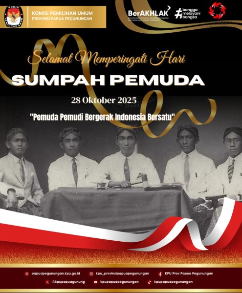 Ia menambahkan bahwa semangat pemuda Indonesia yang diwariskan pada 28 Oktober 1928 harus menjadi inspirasi bagi seluruh aparatur KPU Papua Pegunungan dalam menjalankan tugas penyelenggaraan pemilu.