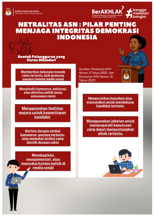 Wamena — Netralitas Aparatur Sipil Negara (ASN) adalah fondasi yang menjaga agar demokrasi Indonesia tetap kokoh, jujur, dan bebas dari intervensi politik. Ketika tahun politik semakin dekat, isu netralitas ASN kembali menjadi sorotan. Artikel ini mengulas definisi, dasar hukum, bentuk pelanggaran, hingga peran KPU dan Bawaslu dalam memastikan ASN tetap profesional. Struktur penulisan dibuat secara SEO oriented agar lebih mudah muncul di halaman pertama Google.