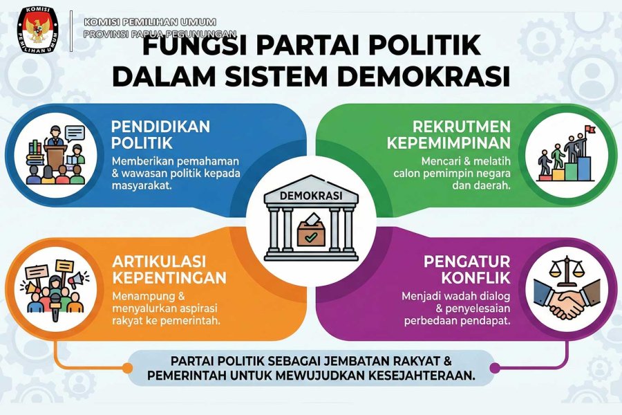 Di Indonesia, termasuk di wilayah Papua Pegunungan yang memiliki karakter sosial dan budaya yang beragam, pemahaman mengenai fungsi partai politik menjadi penting sebagai bagian dari pendidikan pemilih dan penguatan demokrasi lokal.
