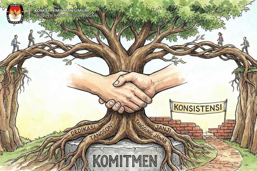 Bagi KPU Provinsi Papua Pegunungan, menjaga komitmen bukan sekadar tuntutan undang-undang, melainkan panggilan sejarah untuk meletakkan batu bata peradaban demokrasi yang kokoh di ufuk timur Indonesia. Tanpa komitmen, pemilu hanya akan menjadi ritual prosedural tanpa jiwa.