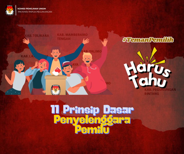 Melalui penerapan 11 Prinsip Dasar Penyelenggara Pemilu, KPU Papua Pegunungan berkomitmen memperkuat tata kelola demokrasi yang bersih, transparan, dan berintegritas. Prinsip-prinsip ini menjadi dasar kerja seluruh penyelenggara dalam menjaga kepercayaan publik serta memastikan setiap suara rakyat dihargai dengan adil.