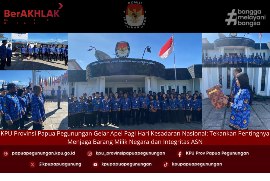 Wamena, Papua Pegunungan — Komisi Pemilihan Umum (KPU) Provinsi Papua Pegunungan kembali menggelar Apel Hari Kesadaran Nasional (HKN) pada Jumat, 17 Oktober 2025, di halaman kantor KPU Papua Pegunungan. Kegiatan rutin yang dilaksanakan setiap tanggal 17 setiap bulan ini menjadi wadah penting dalam membangun semangat nasionalisme, disiplin, dan tanggung jawab Aparatur Sipil Negara (ASN) di lingkungan KPU. Pelaksanaan Apel Hari Kesadaran Nasional berlandaskan pada Surat Edaran Menteri Pendayagunaan Aparatur Negara dan Reformasi Birokrasi (MenPAN-RB) Nomor 16 Tahun 2013 tentang Pelaksanaan Apel Pagi bagi Pegawai Negeri Sipil di Lingkungan Instansi Pemerintah, serta Surat Edaran Menteri Dalam Negeri Nomor 100/2293/SJ Tahun 1991 tentang Pelaksanaan Hari Kesadaran Nasional bagi Pegawai Negeri Sipil. Kedua dasar hukum tersebut menegaskan bahwa setiap instansi pemerintah wajib melaksanakan apel secara rutin, sebagai sarana pembinaan kedisiplinan, peningkatan semangat kebangsaan, serta memperkuat komunikasi antara pimpinan dan pegawai. Baca juga: Hari Batik Nasional, KPU Papua Pegunungan Tampilkan Nuansa Kebudayaan Menumbuhkan Kesadaran sebagai Abdi Negara Apel Hari Kesadaran Nasional bukan sekadar kegiatan seremonial, tetapi memiliki makna mendalam bagi seluruh ASN. Melalui kegiatan ini, ASN diingatkan kembali akan perannya sebagai abdi negara dan pelayan masyarakat, sekaligus menjadi sarana internalisasi nilai-nilai “BerAKHLAK” — Berorientasi pelayanan, Akuntabel, Kompeten, Harmonis, Loyal, Adaptif, dan Kolaboratif. Kegiatan apel juga menjadi momentum evaluasi bagi pimpinan dalam meninjau kinerja dan kedisiplinan pegawai, serta memperkuat tanggung jawab moral dan profesionalisme ASN dalam menjalankan tugas pelayanan publik. Pemilihan tanggal 17 setiap bulan sebagai Hari Kesadaran Nasional bukan tanpa alasan. Tanggal ini dipilih karena melambangkan hari lahirnya Proklamasi Kemerdekaan Republik Indonesia, sehingga diharapkan dapat terus menumbuhkan semangat patriotisme dan pengabdian bagi seluruh ASN. Baca juga: Kartu Kendali Kepegawaian: Strategi KPU Papua Pegunungan Kawal Disiplin dan Kinerja ASN Pesan Disiplin dari Pembina Apel Dalam apel yang dipimpin oleh Adden Siagian, selaku Kepala Bagian Keuangan, Umum, dan Logistik KPU Papua Pegunungan, seluruh jajaran pegawai diingatkan untuk menjaga kedisiplinan, khususnya dalam administrasi perkantoran dan pelaporan kegiatan. “Setiap kegiatan yang telah dilaksanakan harus segera dibuatkan laporan sebagai bentuk tanggung jawab kita sebagai ASN. Kedisiplinan administrasi bukan sekadar rutinitas, tetapi wujud nyata pengabdian dan tanggung jawab kita kepada negara,” tegas Adden Siagian dalam arahannya. Beliau juga menekankan pentingnya konsistensi dan ketertiban dalam bekerja, terutama menjelang tahapan penting penyelenggaraan Pemilu. Kedisiplinan ASN di lingkungan KPU Papua Pegunungan menjadi bagian dari upaya membangun budaya kerja yang profesional dan berintegritas. Menguatkan Semangat Kolektif Melalui Apel Hari Kesadaran Nasional ini, KPU Papua Pegunungan berharap semangat kebersamaan, integritas, dan etos kerja seluruh ASN dapat terus meningkat. Kegiatan apel bukan hanya menjadi rutinitas, tetapi juga momentum reflektif untuk memperkokoh dedikasi dalam menjalankan tugas negara dan pelayanan publik di Tanah Papua. Baca juga: Serahkan SK Pengangkatan PPPK: KPU Papua Pegunungan Dorong Profesionalisme dan Disiplin ASN Baru