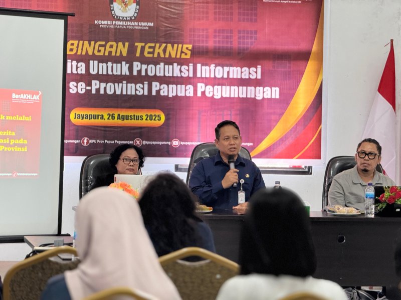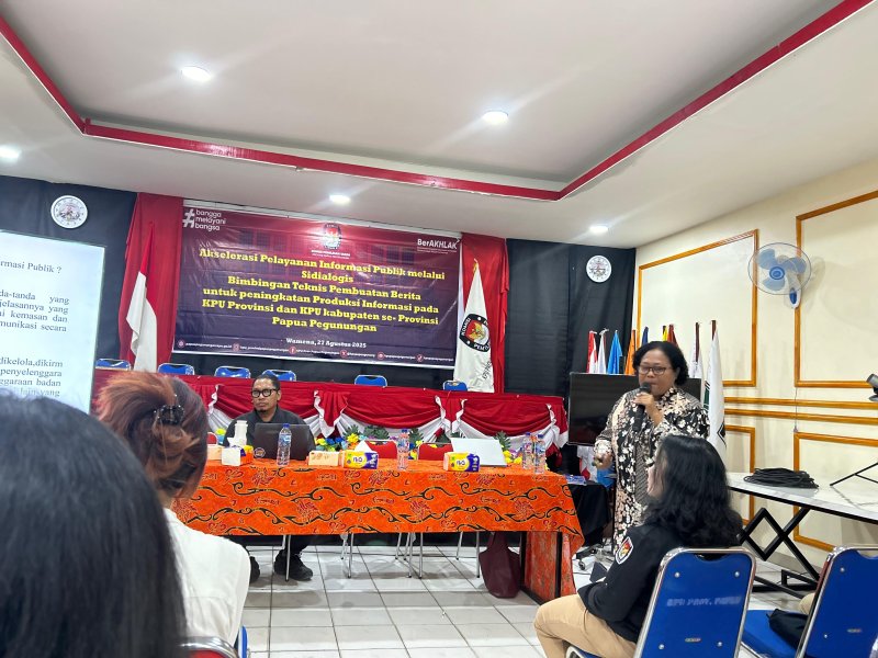 Wamena - KPU Provinsi Papua Pegunungan terus berkomitmen meningkatkan kualitas dan kuantitas informasi publik melalui proyek perubahan Akselerasi SIDIALOGIS. Upaya ini diwujudkan dalam kegiatan Bimbingan Teknis (Bimtek) Pembuatan Berita untuk Peningkatan Produksi Informasi, yang berlangsung di Wamena pada Rabu, 27 Agustus 2025.