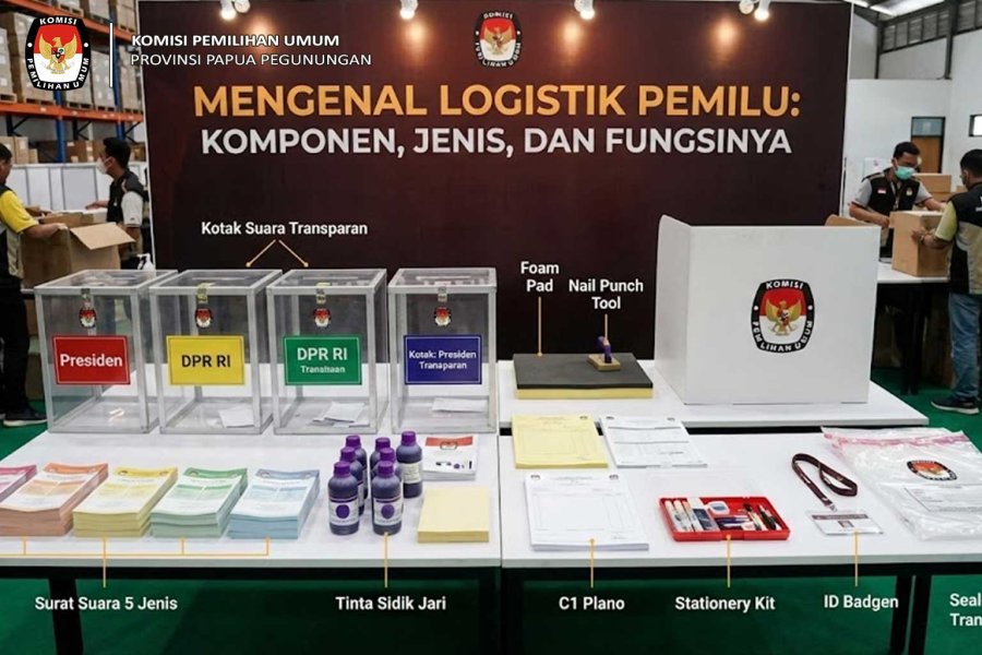 Oksibil - Dalam ingar-bingar pesta demokrasi, perhatian publik sering kali tertuju pada figur kandidat, partai politik, atau dinamika kampanye yang meriah. Namun, di balik panggung politik tersebut, terdapat sebuah operasi raksasa yang bekerja dalam senyap namun menjadi tulang punggung keberhasilan Pemilihan Umum (Pemilu). Operasi tersebut adalah pengelolaan dan distribusi logistik pemilu. Tanpa logistik yang tepat, pemilu hanyalah sebuah konsep tanpa pelaksanaan. Bayangkan jika pemilih sudah datang ke Tempat Pemungutan Suara (TPS), namun surat suara belum tersedia, atau tinta penanda habis. Tentu saja, hak konstitusional warga negara akan tercederai. Oleh karena itu, bagi masyarakat umum dan pemilih cerdas, sangat penting untuk memahami logistik pemilu apa saja yang menjadi instrumen vital dalam menentukan masa depan bangsa ini. Artikel ini akan mengupas tuntas seluk-beluk logistik pemilu, mulai dari definisi, klasifikasi, rincian komponen, hingga tantangan distribusinya, khususnya di wilayah dengan medan menantang seperti Provinsi Papua Pegunungan. Apa Itu Logistik Pemilu? Secara definisi, logistik pemilu adalah segala jenis perlengkapan yang digunakan dalam penyelenggaraan pemilu, mulai dari tahap persiapan, pemungutan suara, penghitungan suara, hingga rekapitulasi hasil penghitungan suara. Dalam konteks manajemen pemilu, logistik bukan sekadar "barang". Ia adalah representasi fisik dari kedaulatan rakyat. Ketersediaan logistik harus memenuhi prinsip 5T (Tepat Jenis, Tepat Jumlah, Tepat Kualitas, Tepat Waktu, dan Tepat Sasaran). Kegagalan dalam satu aspek saja, misalnya keterlambatan waktu, dapat berimplikasi hukum yang serius, seperti pemungutan suara susulan yang berpotensi menurunkan legitimasi hasil pemilu. Baca juga: Perlengkapan TPS Pemilu 2024: Ini Daftar Logistik Resmi dari KPU Fungsi Penting Logistik dalam Penyelenggaraan Pemilu Mengapa logistik disebut sebagai faktor paling krusial? Berikut adalah fungsi utamanya: Menjamin Hak Pilih: Ketersediaan surat suara yang sesuai jumlah Daftar Pemilih Tetap (DPT) ditambah cadangan 2% menjamin setiap warga negara yang berhak dapat memberikan suaranya. Menjaga Kerahasiaan (Luber): Bilik suara didesain spesifik untuk menjamin asas Langsung, Umum, Bebas, dan Rahasia, sehingga pemilih bebas dari intimidasi visual saat mencoblos. Akuntabilitas dan Transparansi: Kotak suara transparan dan segel keamanan berfungsi untuk menjaga kemurnian suara agar tidak dimanipulasi dari TPS hingga ke tingkat rekapitulasi nasional. Bukti Hukum: Formulir hasil penghitungan suara adalah dokumen negara yang menjadi bukti otentik perolehan suara peserta pemilu jika terjadi sengketa di Mahkamah Konstitusi. Tiga Jenis Logistik Pemilu Menurut KPU Berdasarkan Peraturan Komisi Pemilihan Umum (PKPU) Nomor 14 Tahun 2023 tentang Perlengkapan Pemungutan Suara, Dukungan Perlengkapan Lainnya, dan Perlengkapan Pemungutan Suara Lainnya dalam Pemilihan Umum, logistik diklasifikasikan menjadi beberapa kategori utama. Masyarakat sering bertanya, logistik pemilu apa saja yang sebenarnya wajib ada di TPS? Secara garis besar, KPU membaginya menjadi tiga komponen utama: Perlengkapan Pemungutan Suara: Ini adalah komponen inti yang mutlak harus ada. Tanpa komponen ini, pemungutan suara tidak bisa dilaksanakan. Dukungan Perlengkapan Lainnya: Barang-barang yang mendukung operasional KPPS (Kelompok Penyelenggara Pemungutan Suara) dan menjaga keamanan logistik utama. Perlengkapan Pemungutan Suara Lainnya: Termasuk formulir berita acara, sertifikat hasil, dan alat bantu tuna netra. Rincian Perlengkapan Pemungutan Suara Mari kita bedah lebih dalam komponen utama yang akan Anda temui saat memasuki bilik suara. Berikut adalah rinciannya: 1. Kotak Suara Kotak suara saat ini berbahan karton dupleks kedap air dengan sisi transparan. Transparansi ini bertujuan agar saksi dan pemilih bisa melihat bahwa kotak tersebut kosong sebelum pemungutan suara dimulai, namun tetap kokoh menjaga isi di dalamnya. Jumlah kotak suara di setiap TPS pada Pemilu Serentak biasanya ada 5 buah (Presiden, DPR RI, DPD, DPRD Provinsi, DPRD Kab/Kota). 2. Surat Suara Ini adalah "mahkota" dari logistik pemilu. Surat suara dicetak dengan pengaman khusus (microtext/hidden image) untuk mencegah pemalsuan. Terdapat 5 jenis warna surat suara yang perlu diketahui pemilih: Abu-abu: Untuk Presiden dan Wakil Presiden. Kuning: Untuk DPR RI. Merah: Untuk DPD RI. Biru: Untuk DPRD Provinsi. Hijau: Untuk DPRD Kabupaten/Kota. 3. Tinta Tinta pemilu bukan tinta sembarangan. Tinta ini harus memiliki sertifikasi aman untuk kulit (halal dan tidak iritasi) namun memiliki daya tahan (durabilitas) minimal 6 jam atau lebih setelah dicelupkan. Fungsinya adalah sebagai penanda agar seseorang tidak memilih lebih dari satu kali. 4. Bilik Pemungutan Suara Terbuat dari bahan karton atau plastik/aluminium (pada pemilu lama) yang berfungsi menutupi aktivitas pemilih saat mencontreng atau mencoblos pilihan mereka. 5. Segel Stiker keamanan berhologram yang ditempel pada kotak suara, amplop surat suara, dan dokumen penting lainnya. Segel yang rusak mengindikasikan adanya potensi gangguan keamanan pada logistik tersebut. 6. Alat untuk Mencoblos Terdiri dari paku, bantalan/alas coblos (biasanya busa), dan meja. Meskipun sederhana, paku adalah simbol metode pemilihan konvensional Indonesia yang efektif. Logistik Pendukung: Formulir, ATK, dan Kebutuhan TPS Selain komponen inti, terdapat logistik pendukung yang tidak kalah pentingnya. Sering kali luput dari perhatian, namun sangat vital bagi administrasi KPPS. Formulir Model C.Hasil: Dahulu dikenal sebagai C1 Plano. Ini adalah dokumen besar yang ditempel di papan pengumuman TPS untuk mencatat hasil penghitungan suara secara terbuka disaksikan oleh saksi dan pengawas. Salinan Berita Acara: Dokumen yang dibagikan kepada saksi partai politik sebagai pegangan data. Tanda Pengenal KPPS: Kartu identitas yang wajib dipakai oleh 7 anggota KPPS dan 2 petugas ketertiban (Linmas) selama bertugas. Alat Tulis Kantor (ATK): Me