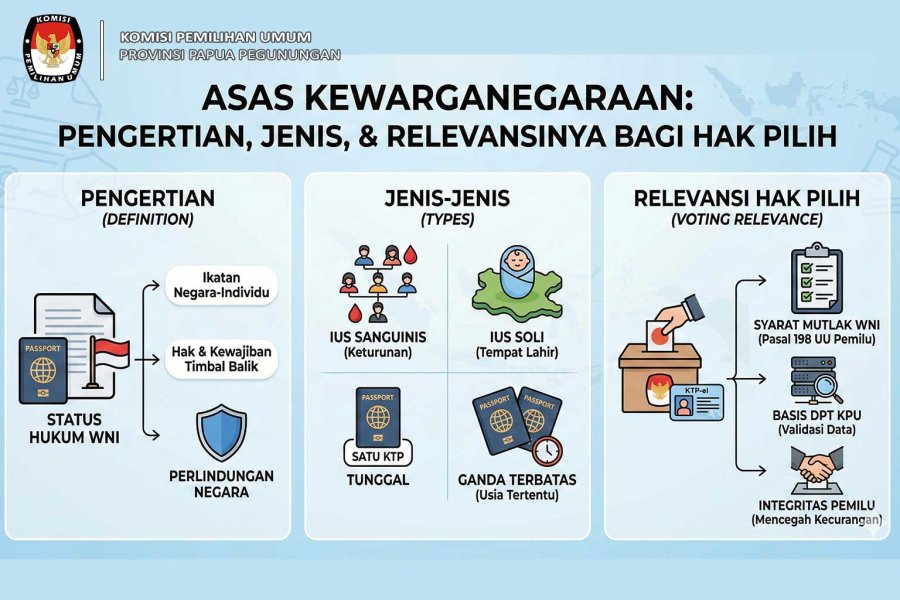 Wamena - Pemilihan Umum (Pemilu) sering disebut sebagai pesta demokrasi, sebuah momentum di mana kedaulatan rakyat diletakkan pada posisi tertinggi untuk menentukan arah masa depan bangsa dan daerah. Namun, di balik gemuruh kampanye dan antusiasme pencoblosan, terdapat satu pertanyaan fundamental yang seringkali dianggap sederhana namun krusial: Siapakah yang sebenarnya memiliki hak legal untuk memberikan suara? Apakah sekadar menjadi penduduk dewasa sudah cukup untuk menjamin seseorang dapat masuk ke bilik suara? KPU Provinsi Papua Pegunungan memandang penting untuk memberikan edukasi mendalam mengenai landasan hukum ini. Memahami syarat pemilih dalam pemilu menurut undang-undang bukan hanya sekadar pengetahuan administratif, melainkan langkah awal yang vital untuk memastikan hak konstitusional Anda tidak tercederai dan integritas pemilu tetap terjaga. Pengertian Pemilih Menurut UU Pemilu Sebelum membedah syarat-syarat spesifik, kita harus memahami terlebih dahulu definisi legal dari "Pemilih". Dalam konteks hukum kepemiluan di Indonesia, rujukan utamanya adalah Undang-Undang Nomor 7 Tahun 2017 tentang Pemilihan Umum. Berdasarkan Pasal 1 angka 34 UU No. 7 Tahun 2017, Pemilih didefinisikan sebagai Warga Negara Indonesia (WNI) yang sudah genap berumur 17 (tujuh belas) tahun atau lebih, sudah kawin, atau sudah pernah kawin. Definisi ini menegaskan bahwa hak memilih adalah hak eksklusif yang melekat pada status kewarganegaraan Indonesia dengan batasan usia atau status perkawinan tertentu. Status ini bukanlah pemberian sukarela, melainkan hak yang dijamin oleh negara melalui undang-undang, selama individu tersebut memenuhi kriteria yang ditetapkan. Baca juga: Ini Hak dan Kewajiban Pemilih yang Wajib Diketahui Syarat Umum Menjadi Pemilih dalam Pemilu Agar seorang WNI dapat menggunakan hak pilihnya, terdapat serangkaian syarat kumulatif yang harus dipenuhi. Merujuk pada Pasal 198 UU No. 7 Tahun 2017 dan Peraturan KPU (PKPU) terkait pemutakhiran data pemilih, berikut adalah rincian syarat pemilih dalam pemilu menurut undang-undang yang wajib diketahui: 1. Warga Negara Indonesia (WNI) Ini adalah syarat mutlak. Warga negara asing, meskipun telah lama berdomisili di Indonesia, tidak memiliki hak pilih. 2. Usia Minimal atau Status Perkawinan Pemilih harus telah genap berusia 17 tahun atau lebih pada hari pemungutan suara. Namun, undang-undang memberikan pengecualian: bagi WNI yang belum berusia 17 tahun tetapi sudah kawin atau sudah pernah kawin, mereka tetap berhak menjadi pemilih. 3. Tidak Sedang Dicabut Hak Pilihnya Seseorang dapat kehilangan hak pilihnya untuk sementara waktu jika sedang menjalani hukuman berdasarkan putusan pengadilan yang telah mempunyai kekuatan hukum tetap, yang secara spesifik mencabut hak politiknya. 4. Memiliki Identitas Kependudukan Secara administratif, syarat ini dibuktikan dengan kepemilikan Kartu Tanda Penduduk Elektronik (KTP-el). Ini menjadi krusial dalam proses pendataan dan verifikasi di Tempat Pemungutan Suara (TPS). 5. Tidak Sedang Menjadi Anggota TNI/Polri Anggota Tentara Nasional Indonesia (TNI) dan Kepolisian Negara Republik Indonesia (Polri) aktif tidak memiliki hak memilih. Hal ini diatur untuk menjaga netralitas institusi pertahanan dan keamanan negara dalam kontestasi politik. Status Hak Pilih: Siapa yang Tidak Memenuhi Syarat? Memahami siapa yang berhak harus diimbangi dengan memahami siapa yang tidak atau belum berhak (Tidak Memenuhi Syarat/TMS). Kategori TMS ini penting dalam proses pemutakhiran data pemilih yang dilakukan KPU. Beberapa kategori utama yang menyebabkan seseorang dianggap TMS antara lain: 1. Meninggal Dunia Warga yang telah wafat tentu harus dicoret dari daftar pemilih untuk mencegah penyalahgunaan data. 2. Anggota TNI/Polri Aktif Seperti disebutkan di atas, personil aktif tidak dapat memilih. Namun, perlu dicatat bahwa pensiunan (purnawirawan) TNI/Polri yang telah kembali menjadi warga sipil memiliki hak pilih penuh, asalkan memenuhi syarat lainnya. 3. Belum Berusia 17 Tahun dan Belum Kawin Kelompok usia anak-anak dan remaja di bawah umur yang belum menikah masuk dalam kategori ini. 4. Pindah Domisili Jika seseorang telah pindah dan terdaftar di daerah lain, maka statusnya di daerah asal menjadi TMS agar tidak terjadi data ganda. Baca juga: Hak dan Kewajiban Pemilih Saat di TPS: Panduan untuk Pemilu 2024 Cara Pemilih Terdaftar dalam DPT Memenuhi syarat usia dan kewarganegaraan saja tidak otomatis membuat Anda bisa langsung "nyoblos". Syarat krusial lainnya adalah terdaftar secara administratif. Dalam sistem pemilu kita, terdapat tiga kategori daftar pemilih: Daftar Pemilih Tetap (DPT) Ini adalah daftar utama. Berisikan data pemilih yang telah melalui proses pencocokan dan penelitian (coklit) panjang oleh KPU, mulai dari tingkat kelurahan/kampung hingga ditetapkan di tingkat nasional. Idealnya, setiap pemilih yang memenuhi syarat harus masuk dalam DPT. Daftar Pemilih Tambahan (DPTb) Daftar ini diperuntukkan bagi pemilih yang sudah terdaftar dalam DPT di suatu TPS, namun karena keadaan tertentu (seperti tugas kerja, rawat inap, atau bencana) tidak dapat menggunakan haknya di TPS asal dan mengurus pindah memilih ke TPS lain. Daftar Pemilih Khusus (DPK) Ini adalah mekanisme perlindungan hak pilih pamungkas. DPK diperuntukkan bagi warga yang memenuhi syarat sebagai pemilih (punya KTP-el, sudah 17 tahun/kawin) tetapi belum terdaftar sama sekali dalam DPT maupun DPTb. Mereka dapat memilih di TPS sesuai alamat KTP-el mereka pada satu jam terakhir sebelum penutupan TPS, selama surat suara masih tersedia. Peran KPU dalam Memastikan Keabsahan Pemilih KPU, termasuk KPU Provinsi Papua Pegunungan dan jajaran di bawahnya, memiliki tanggung jawab besar untuk memastikan hanya mereka yang memenuhi syarat pemilih dalam pemilu menurut undang-undang yang masuk ke dalam DPT. Proses ini sangat panjang dan melelahkan. Dimulai dari penerimaan Data Penduduk Potensial Pemilih Pemilu (DP4) dari pemerintah (Kemendagri), KPU kemudian menurunkannya ke petugas Panta