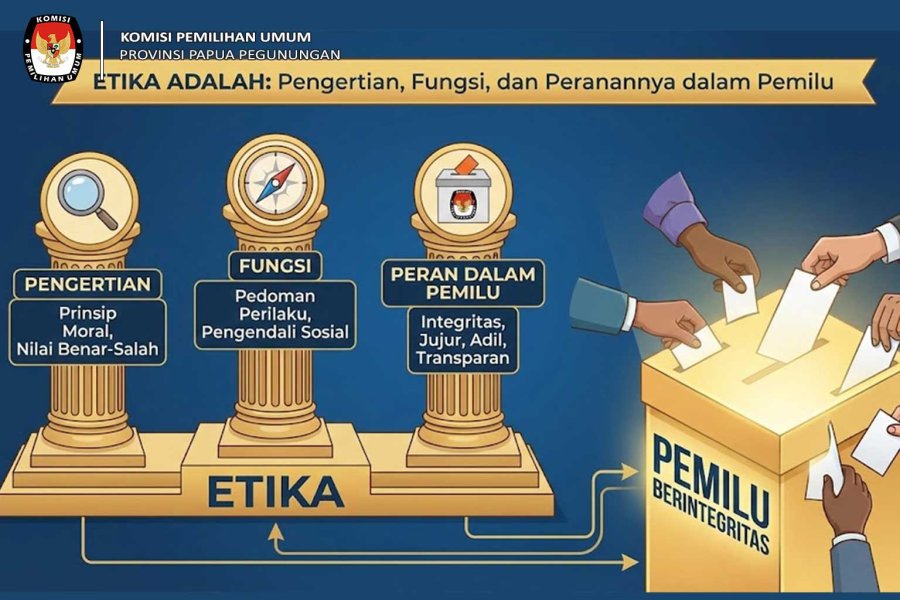 Oksibil - Dalam setiap sendi kehidupan bermasyarakat, berbangsa, dan bernegara, terdapat nilai-nilai fundamental yang menjadi pedoman perilaku. Nilai-nilai ini berfungsi sebagai kompas moral yang memastikan interaksi antarindividu dan antarkelompok berjalan harmonis, adil, dan bermartabat. Pedoman moral inilah yang kita kenal dengan istilah etika. Di tengah dinamika demokrasi Indonesia yang terus berkembang, pemahaman mengenai etika menjadi sangat krusial, terutama dalam konteks politik dan pemilihan umum (Pemilu). Sebagai lembaga penyelenggara pemilu, Komisi Pemilihan Umum (KPU) Provinsi Papua Pegunungan memandang penting untuk terus mengedukasi publik mengenai substansi etika. Artikel ini akan mengupas tuntas apa itu etika, fungsinya dalam kehidupan luas, serta peran vitalnya sebagai fondasi penyelenggaraan pemilu yang berintegritas. Pengertian Etika dalam Kehidupan Untuk memahami peranannya yang kompleks, kita perlu memulai dari definisi dasarnya. Secara etimologis, kata etika berasal dari bahasa Yunani kuno, “ethos”, yang berarti kebiasaan, adat, akhlak, watak, perasaan, sikap, dan cara berpikir. Dalam pengertian yang lebih luas dan filosofis, etika adalah cabang filsafat yang mempelajari nilai dan kualitas yang menjadi studi mengenai standar dan penilaian moral. Etika tidak sekadar berbicara tentang apa yang boleh dan tidak boleh dilakukan, tetapi lebih dalam lagi, ia mempertanyakan "mengapa" suatu tindakan dianggap baik atau buruk, benar atau salah. Secara praktis dalam kehidupan sehari-hari, etika adalah seperangkat prinsip moral atau norma yang mengatur perilaku manusia. Ia menjadi refleksi kritis dan rasional mengenai nilai dan norma yang menyangkut bagaimana manusia harus hidup baik sebagai manusia. Berbeda dengan hukum yang bersifat memaksa dan tertulis, etika seringkali bersifat tidak tertulis namun memiliki daya ikat moral yang kuat dalam hati nurani setiap individu. Baca juga: DKPP: Penjaga Etika Penyelenggara Pemilu, Penguat Integritas KPU Papua Pegunungan Fungsi Etika dalam Mengatur Perilaku Individu dan Kelompok Keberadaan etika dalam masyarakat bukanlah tanpa alasan. Ia memiliki fungsi-fungsi fundamental yang menjaga keteraturan sosial. Berikut adalah beberapa fungsi utama etika: Sebagai Orientasi Kritis Etika berfungsi sebagai sarana untuk memperoleh orientasi kritis dalam berhadapan dengan berbagai moralitas yang membingungkan. Di zaman modern di mana nilai-nilai sering berbenturan, etika membantu individu untuk mengambil sikap yang dapat dipertanggungjawabkan secara rasional. Alat Pengendali Sosial Etika bertindak sebagai pagar pembatas. Ia mengatur agar kebebasan individu tidak melanggar hak-hak orang lain, sehingga mencegah terjadinya kekacauan (chaos) dalam masyarakat. Pembentuk Karakter Penerapan nilai-nilai etika secara konsisten akan membentuk karakter dan integritas seseorang. Individu yang beretika cenderung memiliki reputasi yang baik dan dipercaya oleh lingkungannya. Pedoman Pengambilan Keputusan Dalam situasi dilematis, etika memberikan landasan pertimbangan untuk memutuskan tindakan mana yang paling membawa kemaslahatan dan minim kerugian bagi banyak pihak. Pentingnya Etika dalam Lembaga Publik Jika dalam ranah pribadi etika itu penting, maka dalam ranah publik, urgensinya berlipat ganda. Lembaga publik, seperti instansi pemerintahan dan lembaga negara, dibentuk untuk melayani kepentingan masyarakat luas. Oleh karena itu, kepercayaan publik (public trust) adalah modal utamanya. Dalam konteks lembaga publik, etika adalah fondasi dari tata kelola pemerintahan yang baik (good governance). Tanpa etika, kekuasaan cenderung disalahgunakan (korupsi, kolusi, dan nepotisme). Etika birokrasi menuntut para pejabat dan aparatur negara untuk bekerja dengan prinsip transparansi, akuntabilitas, dan mengutamakan kepentingan umum di atas kepentingan pribadi atau golongan. Ketika lembaga publik menjunjung tinggi etika, legitimasi mereka di mata rakyat akan semakin kuat. Etika Kepemiluan: Prinsip-Prinsip Utama Pemilihan Umum adalah puncak dari pesta demokrasi, sebuah mekanisme di mana kekuasaan politik diperebutkan dan ditentukan oleh rakyat. Karena melibatkan perebutan kekuasaan yang masif, potensi gesekan dan pelanggaran sangat tinggi. Di sinilah etika kepemiluan hadir sebagai "aturan main" yang menjaga agar kompetisi berjalan fair. Etika kepemiluan di Indonesia berlandaskan pada asas Pemilu yang termaktub dalam konstitusi, yaitu LUBER (Langsung, Umum, Bebas, Rahasia) dan JURDIL (Jujur dan Adil). Prinsip-prinsip ini bukan sekadar jargon hukum, melainkan nilai etis yang harus diejawantahkan dalam setiap tahapan pemilu. Kejujuran menuntut transparansi data dan proses, sedangkan keadilan menuntut perlakuan yang setara kepada seluruh peserta pemilu tanpa diskriminasi. Etika Penyelenggara Pemilu (KPU) Sebagai wasit dalam kontestasi demokrasi, KPU (termasuk KPU Provinsi Papua Pegunungan dan jajarannya di tingkat kabupaten/kota) memikul beban etis yang paling berat. Bagi penyelenggara pemilu, etika adalah harga mati yang tidak bisa ditawar. Kode etik penyelenggara pemilu diatur secara ketat dan diawasi oleh Dewan Kehormatan Penyelenggara Pemilu (DKPP). Berdasarkan Peraturan DKPP, penyelenggara pemilu wajib berpedoman pada prinsip: Mandiri: Penyelenggara harus bebas dari pengaruh pihak manapun, baik peserta pemilu, pemerintah, maupun kelompok kepentingan lainnya. Jujur: Menyampaikan data dan informasi apa adanya sesuai fakta di lapangan. Adil: Memperlakukan semua peserta pemilu dan pemilih dengan setara tanpa memihak. Kepastian Hukum: Bertindak semata-mata berdasarkan regulasi yang berlaku, bukan atas dasar preferensi pribadi. Profesional: Bekerja dengan keahlian, ketelitian, dan tanggung jawab tinggi. Pelanggaran terhadap prinsip-prinsip ini bukan hanya kesalahan administratif, tetapi merupakan pelanggaran etika berat yang dapat mencederai integritas hasil pemilu. KPU Provinsi Papua Pegunungan berkomitmen penuh untuk terus menjaga netralitas dan integritas dalam melayani hak